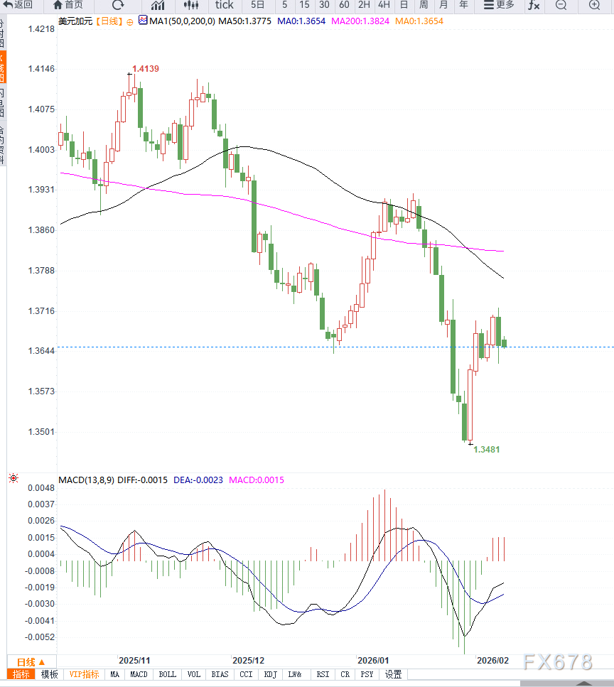 汇通财经APP讯——周一欧洲时段,美元兑加元(USD/CAD)延续温和上行,汇价在1.3660附近盘整。市场正权衡加拿大1月就业数据和即将公布的美国就业报告对货币政策的潜在影响。